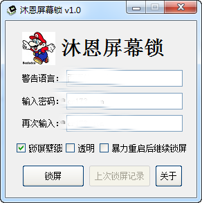 打開軟件輸入鎖屏?xí)r屏幕上顯示的信息及解鎖密碼,可以勾選暴力重啟后繼續(xù)鎖屏,這樣在別人重啟你的電腦后電腦依舊處于鎖屏狀態(tài)。