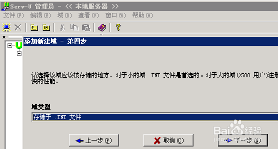 6. 域類型用默認的,“存儲于.int文件”,下一步,完成域的創(chuàng)建.