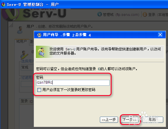 9.接著輸入這個用戶訪問的密碼,點“下一步”.