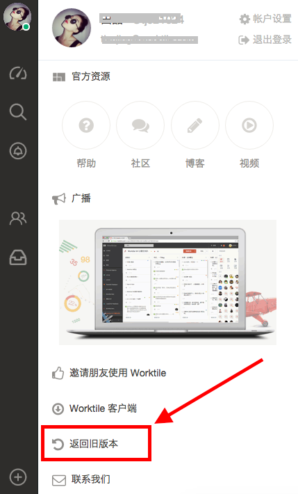 新版退回舊版↓↓↓操作按鈕同樣位于左上角個人頭像內(nèi)的設(shè)置