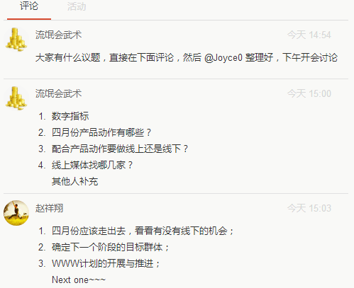 2、在日程下面利用評論收集大家想要在會議上討論的議題;