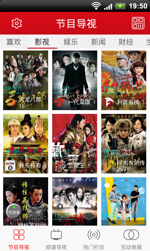 - 電視導視遙控:打開手機就可查看電視機上所有頻道正在播出的電視節(jié)目單,點擊節(jié)目名稱就可以直接遙控機頂盒切換頻道播放這個節(jié)目;