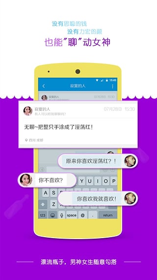 漂流瓶子,真正自由的陌生人交友應(yīng)用。