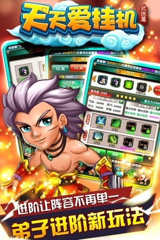 1、核心玩法:本作采用全自動(dòng)放置類戰(zhàn)斗模式,玩家僅需對(duì)獲得的游戲資源進(jìn)行合理分配,“弟子”將是最核心的存在,可以通過聚賢莊和掛機(jī)功獲得,而掛機(jī)還可以提升弟子的等級(jí)和裝備使其逐漸強(qiáng)力,其他功能也多與弟子配套使用,如熔煉、布陣、裝備等。
