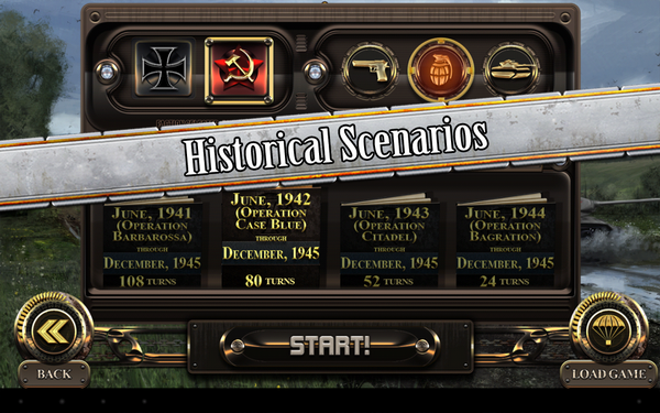《蘇聯(lián)前線安卓版 Russian Front》游戲的背景設(shè)定與二次世界大戰(zhàn)的東部戰(zhàn)線,以德國在巴巴羅薩行動(dòng)(Operation Barbarossa)中從西面閃電突襲蘇聯(lián)為起點(diǎn),繞了一大圈又將戰(zhàn)事推進(jìn)回柏林。