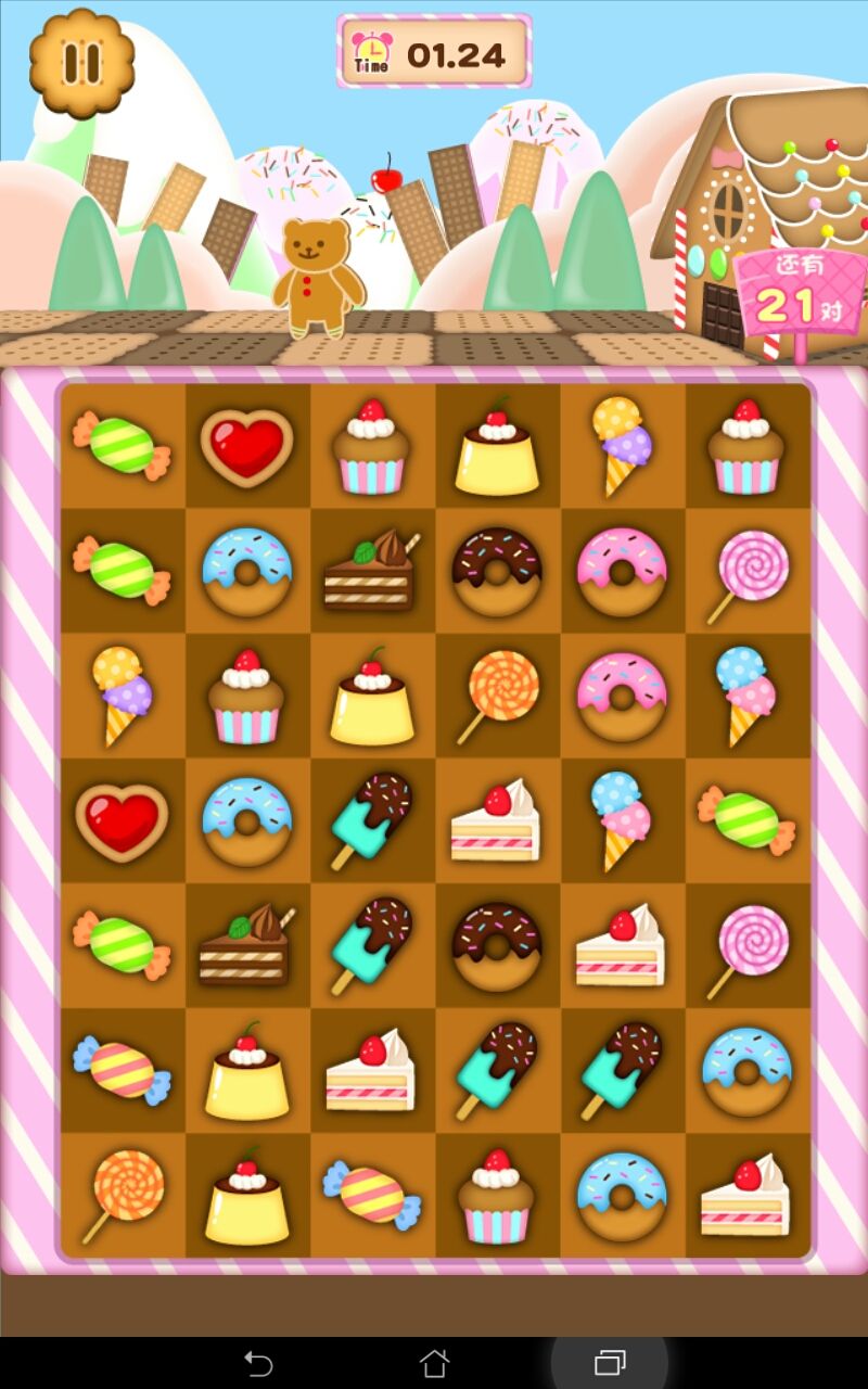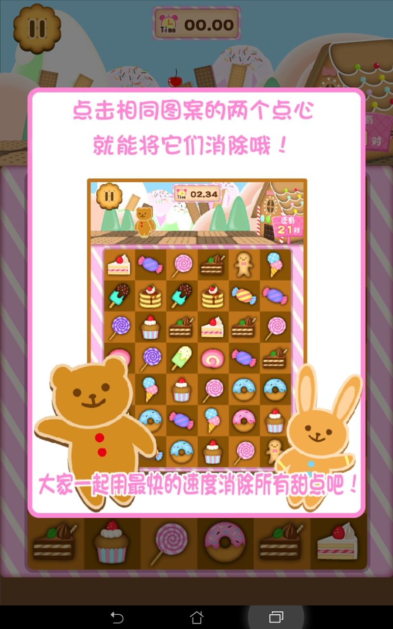 動(dòng)感甜點(diǎn)是一款可愛又簡(jiǎn)單的消除游戲,點(diǎn)擊相同的兩個(gè)甜點(diǎn)就能消除,此游戲沒有關(guān)卡設(shè)定,游戲是比拼手速的,現(xiàn)在全球玩家的最快記錄是7.43秒,我最快玩到11秒多,不知道大家能不能突破7.43秒的記錄~