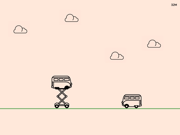 《奇妙旅途 The Trip》是一款風(fēng)格簡約的無盡跑酷游戲,以往的跑酷游戲都非常注重畫面的酷炫,科幻風(fēng)、魔幻風(fēng)打造的畫面完全是華麗的世界,但《奇妙旅途》卻不走尋常路,如同小學(xué)生作品般的簡約畫風(fēng)看起來雖然不酷,卻很有愛。游戲中玩家要操控一輛露營車,在一條簡單樸素的手繪道路上疾馳,點擊屏幕可以進行跳躍,收集到從天空中落下的晶體可以讓露營車擁有新的能力,如:彈簧跳躍、飛行、“瘋鳥”式空中跳躍等。