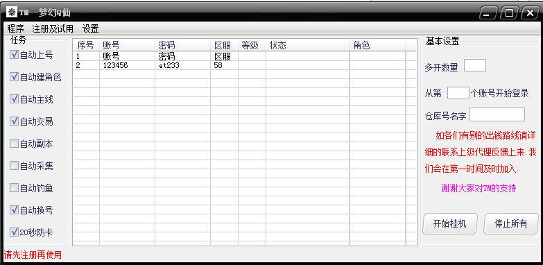 3.賬號密碼在輔助目錄下按原來的格式修改..打開輔助后會自動讀取的.無須選擇路徑.