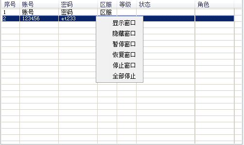 六.全部停止:鼠標(biāo)右鍵點擊某行號再點擊全部停止 對輔助所有的賬號停止