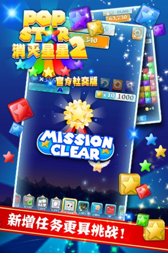 新增消滅星星小任務(wù),完成任務(wù)指定顏色的星星消除,獲得積分獎(jiǎng)勵(lì);新增POPSTAR字母收集小任務(wù),全部收齊獲得額外獎(jiǎng)勵(lì);新增雷神之錘、賭徒之手、本杰明的時(shí)鐘游戲道具,全新功能更多挑戰(zhàn)