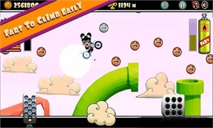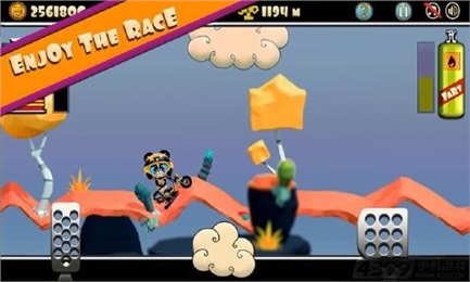 暴躁熊:登山賽車是一款競技類賽車游戲。一只脾氣暴躁的熊駕駛著一輛摩托車,現(xiàn)在由你來控制它,替它執(zhí)行所有任務(wù),但是要小心不要讓熊掉下車,否則它會向你發(fā)火。游戲中暴躁熊通過放屁來進行跳躍,它所駕駛的摩托車顏色和服裝可以由你自己選定,此外,多收集游戲中的金幣,那樣你就可以更新裝備,改裝摩托車。游戲畫面卡通韻味十足,游戲音效和音樂充滿著歡樂,在你業(yè)余無聊的時候,這款游戲是個不錯的選擇。【游戲特色】