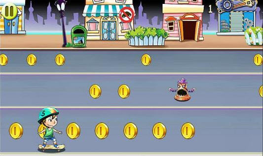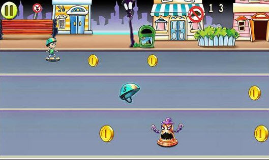 街頭快沖安卓版是一款滑板跑酷游戲,游戲主人公是一個呆萌的小男孩,玩家要控制小男孩在街上滑滑板,帶好安全帽,做好防護措施,一路向前滑行,滑行的過程中要得到盡量多的金幣,還有各種道具可以得到。