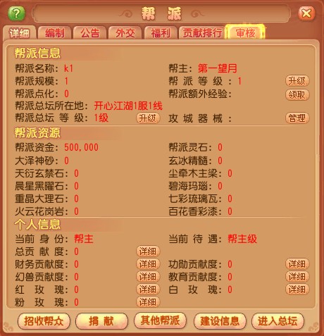 一旦你點(diǎn)擊申請加入指定幫派后,該幫派幫主的幫派信息界面中就會(huì)新出現(xiàn)一個(gè)審核分頁!