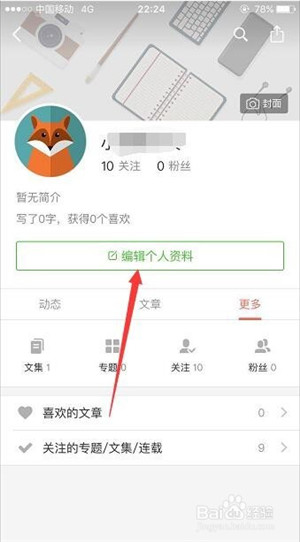 2、進(jìn)入個人主頁,點(diǎn)開 編輯個人資料。