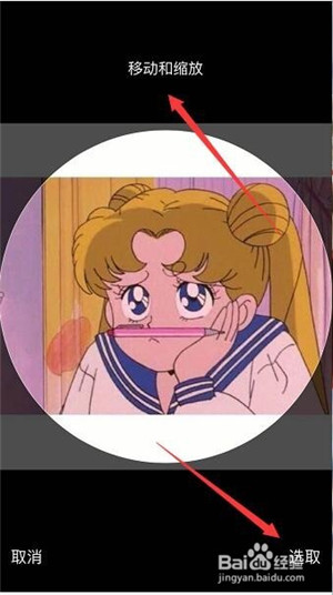 4、點(diǎn)擊頭像訪問手機(jī)相冊,選取一張自己喜歡的圖片,適當(dāng)移動和縮放圖片,然后選取頭像。