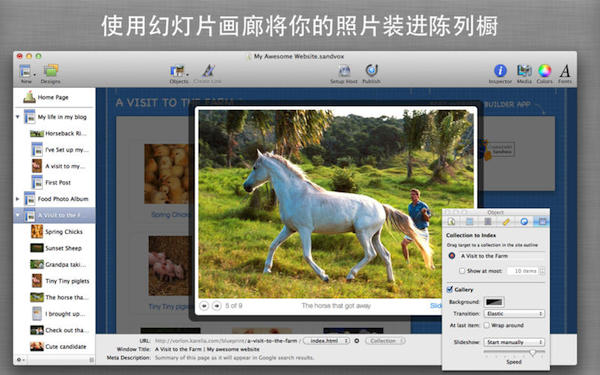 以網(wǎng)格和看片臺(tái)樣式的畫廊展示你的照片。