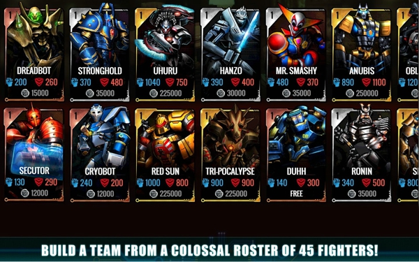 把你最好的球隊(duì)選擇從45個(gè)獨(dú)特的機(jī)器人靈感來(lái)自于神,角斗士們的喜歡了,噴火龍,僧侶,武庫(kù),武士,武士和那么多的特點(diǎn)!機(jī)器人裝配的額外變化解鎖新的力量和動(dòng)作創(chuàng)造一種全新的戰(zhàn)斗經(jīng)驗(yàn)!