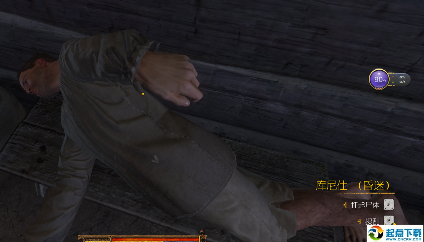 拿著錢買木炭后去酒館跟三個基友到德國佬家里扔大便,勸說女主人離開后右拐往下狂奔,不要接近三個基友NPC,這時候會自動存檔,然后你就去最下面有個守衛(wèi)士兵,蹲下?lián)魰炈?,不成功依舊讀檔成功為止,扒光他
