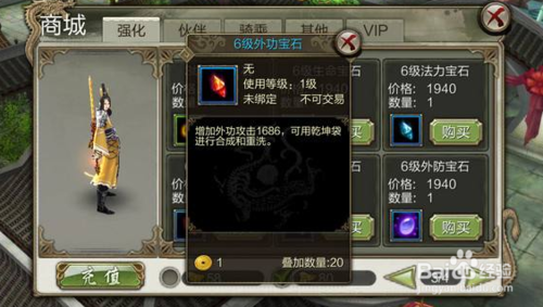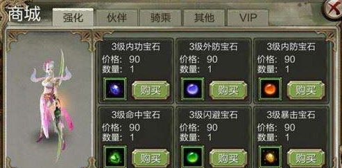 1.商城購買:玩家在商城購買三級或者六級兩種寶石,當然有錢的話購買6級寶石會比較劃算。如果普通玩家的話綁定元寶不要隨便用,主要用來購買三級寶石可以快速提升戰(zhàn)力。
