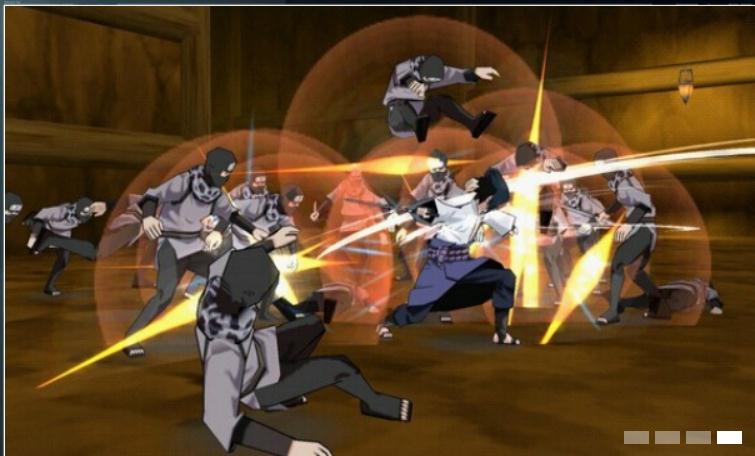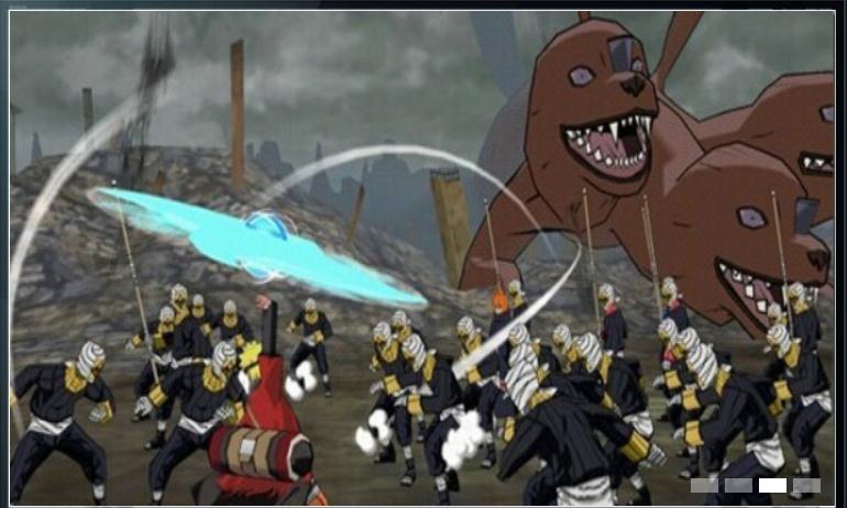 沖擊戰(zhàn)斗:所謂的沖擊戰(zhàn)斗也就是在面對大批雜兵時,一次性的利用體術(shù)或者忍術(shù)來將所有敵人打倒的無雙型戰(zhàn)斗,本作之所以被大家稱作“火影無雙”,也即是來源于這種爽快感。