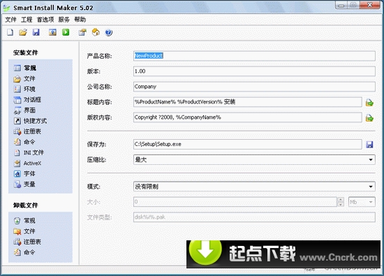 Smart Install Maker 5.04是一款創(chuàng)建打包安裝程序的軟件。是一款適合電腦初學(xué)者使用的安裝程序制作工具。本軟件使用簡(jiǎn)單,上手方便,功能齊全,不需要編寫一行代碼或腳本,就可制作出非常專業(yè)的安裝程序,特別適合于從沒使用過安裝程序制作工具的新手使用。對(duì)于熟悉安裝程序的人,此軟件也可以加快安裝程序制作的速度。而且用本工具制作的安裝程序的文件頭非常小,非常適合于對(duì)小型程序的封裝。