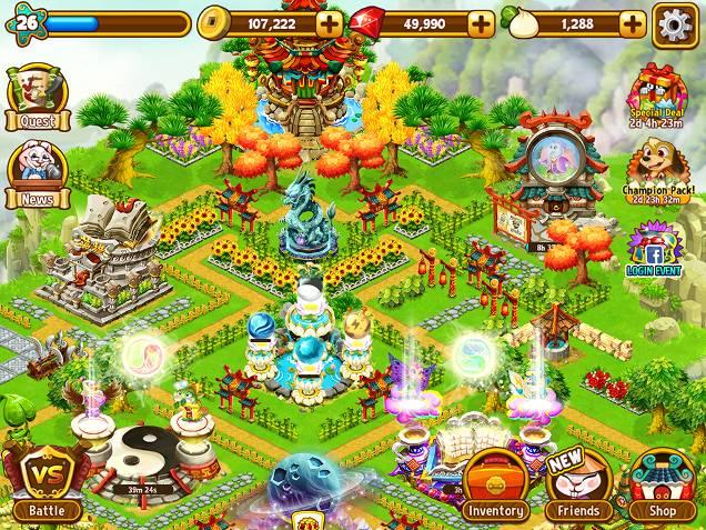 包含貓、獼猴、龍和熊貓?jiān)趦?nèi)的70多種功夫?qū)櫸?,不同屬性進(jìn)行組合,還可獲得新的功夫?qū)櫸铩?br />游戲以包含了東西洋色彩以及華麗而神秘的 “少林”為主要背景。玩家可在少林中召喚出蜥蜴、貓、獼猴和龍等70多種可愛(ài)的功夫?qū)櫸?,通過(guò)喂食和訓(xùn)練培養(yǎng)成為更強(qiáng)大的英雄。功夫?qū)櫸锕卜譃樯帧⒋蟮?、火焰、冰霜、閃電、水流、暴風(fēng)、黑暗和宇宙共9種不同屬性,并通過(guò)各屬性間的搭配,加以獨(dú)特的召喚方式,與其他SNG游戲形成差異。