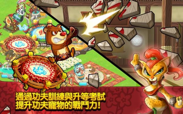 功夫?qū)櫸镉螒蛑?,玩家首先要?gòu)建屬于自己的專(zhuān)屬召喚秘籍,或是與好友們分享召喚術(shù)的組合公式,然后就可以開(kāi)始著手收集各式寵物了。在游戲中統(tǒng)共設(shè)計(jì)了有70余種從造型到屬性特點(diǎn)再到招式技能都各不相同的功夫?qū)櫸?,玩家在收集到他們之后,還要通過(guò)喂食各類(lèi)精美食材的方式來(lái)對(duì)其進(jìn)行培養(yǎng),而后再通過(guò)對(duì)戰(zhàn)試煉的方式,令寵物全面覺(jué)醒,覺(jué)醒后的寵物不僅相較之前會(huì)具有更加華麗的外形,在戰(zhàn)斗力上也會(huì)有著浴血重生般的大幅提升。當(dāng)玩家在收集到相當(dāng)數(shù)量的功夫?qū)櫸镏?,就可以開(kāi)始搭建自家的訓(xùn)練場(chǎng),裝飾寵物的棲息地,從而創(chuàng)造出自己的“功夫村”、“少林寺”,而好友之間互相造訪對(duì)方的村落,雙方還都會(huì)獲得相應(yīng)的系統(tǒng)獎(jiǎng)勵(lì)。此外,在玩家培養(yǎng)訓(xùn)練寵物的過(guò)程中本作還引入了一些迷你小游戲,這些別具特色的小亮點(diǎn)也對(duì)玩家在游戲樂(lè)趣的提升上增色不少。