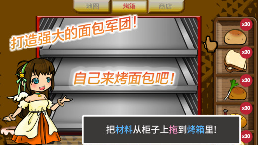 面包大作戰(zhàn)游戲中有多種口味面包士兵由你領導,殲滅前方入侵者;動手烘烤面包,制造你的面包士兵;