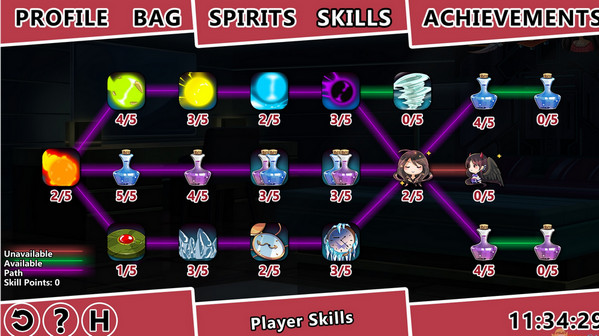 等級(jí)系統(tǒng):所有的人物都可以升到99級(jí),總共有16中精靈可以升級(jí)。技能樹:每一個(gè)等級(jí)都可以獲得技能點(diǎn),可以合理分配到12種主動(dòng)技能和8種被動(dòng)技能中去。