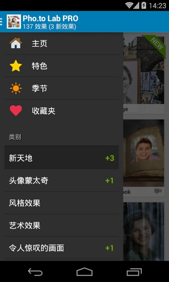 擁有 Pho.to Lab PRO,您就可以輕松地創(chuàng)建充滿趣味的照片蒙太奇、超酷的聯(lián)系人圖標集、動漫效果的照片漫畫、電子卡片以及手機壁紙!您會愛上該應用程序所提供的用戶友好型界面及其便捷應用。Pho.to Lab PRO 不包含任何廣告,而且不會在您制作好的圖像上設置水印。此外,它具有額外附贈的照片效果組群,您無須象在使用標準版本時那樣再單獨為這些效果支付費用。
