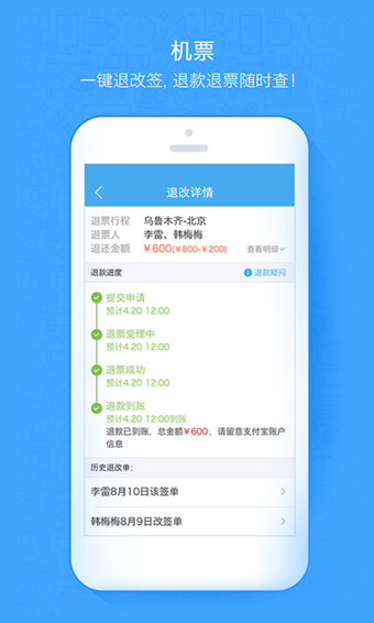 [火車票]提供中途站余票查詢及購買功能、退票流程優(yōu)化。