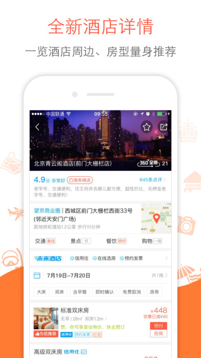 -新增了酒店周邊交通餐飲等信息的評級,一目了然幫您做出更對的選擇。