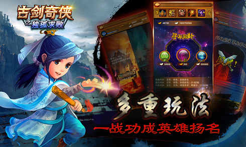古劍奇?zhèn)b之獨(dú)孤求敗是一款以古典武俠為題材,復(fù)合RPG+策略玩法的卡牌大作,一經(jīng)推出就大受歡迎,成為新浪微博年度最佳手游。將一大批金庸武俠中的經(jīng)典形象進(jìn)行了萌化,名字也做了一些修改,也更突出了人物在小說中原本的特點(diǎn)。