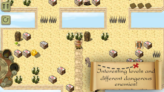 《鋪平道路 Pave The Way》是一款休閑益智的游戲。游戲發(fā)生在一名尋寶獵人在沙漠上開始了尋寶之旅,不過他的行程并不順利,因?yàn)樽咴谏衬袩o法辨別方向,于是他只能走直線,并且碰到障礙物才會(huì)停下來改變方向。游戲中玩家需要縷清線路,并合理運(yùn)用道具,讓尋寶獵人收集好地圖上的每一個(gè)寶物,游戲的玩法非常簡(jiǎn)單,任何玩家都可以輕松上手。游戲提供了80個(gè)關(guān)卡,讓你能夠玩上好一會(huì)兒!對(duì)于熱愛這類游戲的玩家,一定不能錯(cuò)過這款游戲。