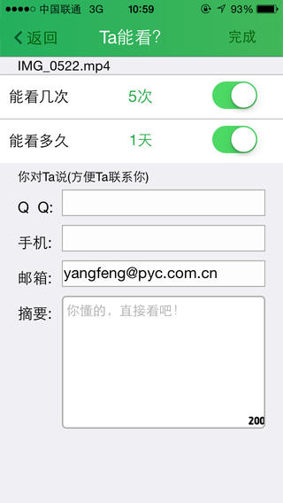 接收方只能在發(fā)送方預(yù)設(shè)的可讀天數(shù)、次數(shù)內(nèi)閱讀,也可轉(zhuǎn)發(fā)給其他人。發(fā)送方可隨時(shí)終止、延長(zhǎng)、縮短預(yù)設(shè)的閱讀條件。
