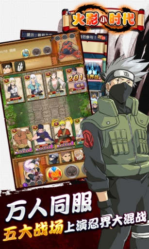 三、獨(dú)創(chuàng)"萬人同服,忍界混戰(zhàn)"的互動(dòng)玩法,涵蓋忍界、忍村、試煉、排位等五大戰(zhàn)場玩法;