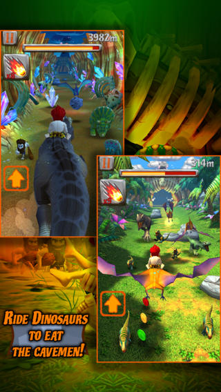 《原始人沖沖沖 Caveman Dino Rush》是一款跑酷游戲,在游戲中我們需要拯救被綁架的妹子,游戲的操作非常簡單,游戲使用重力感應操控人物左右移動,按住左邊屏幕控制跳躍,按住右邊屏幕實施攻擊,而攻擊時使用的斧頭有數(shù)量限制,不過我們可以拾取路邊遺落的斧頭來進行補充。此外在游戲中我們還可以乘騎友方的恐龍坐騎哦!