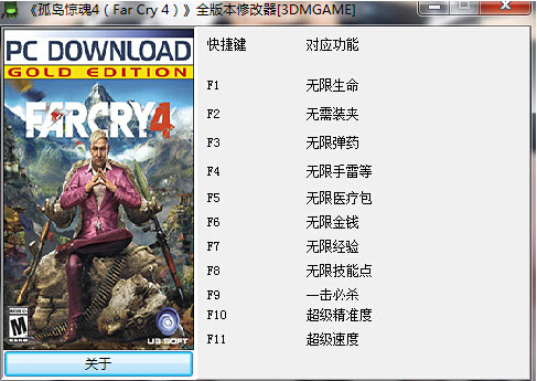 孤島驚魂4修改器一共有英簡繁三種語言,在簡體、繁體以外的系統(tǒng)上均顯示英文。右鍵點擊修改器界面最小化。按下Home鍵或退出修改器,關(guān)閉所有修改。