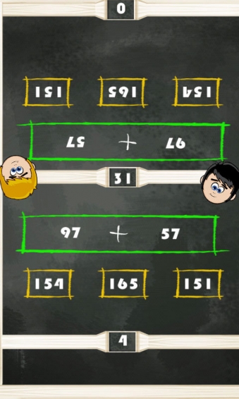 《雙人算術(shù)大對戰(zhàn)》全家人都可以一起玩的雙人算數(shù)游戲,可以爸媽和小孩子玩,也可以由2個小孩子對戰(zhàn)。游戲包含5中預(yù)算:加法、減法、乘法、除法、開平方根。讓孩子(寶寶)輕松學(xué)習(xí)數(shù)學(xué)一直是困擾每個家長的一項難題,雙人算術(shù)大對戰(zhàn)是一款適合于幼兒和兒童激發(fā)學(xué)習(xí)算術(shù)興趣的益智類游戲。游戲以寓教于樂的形式和超酷游戲界面讓孩子玩中學(xué),達(dá)到學(xué)習(xí)算術(shù)的目的。 同時能增強(qiáng)小伙伴們直接的感情,增強(qiáng)爸媽和小孩的親子關(guān)系。【游戲特色】