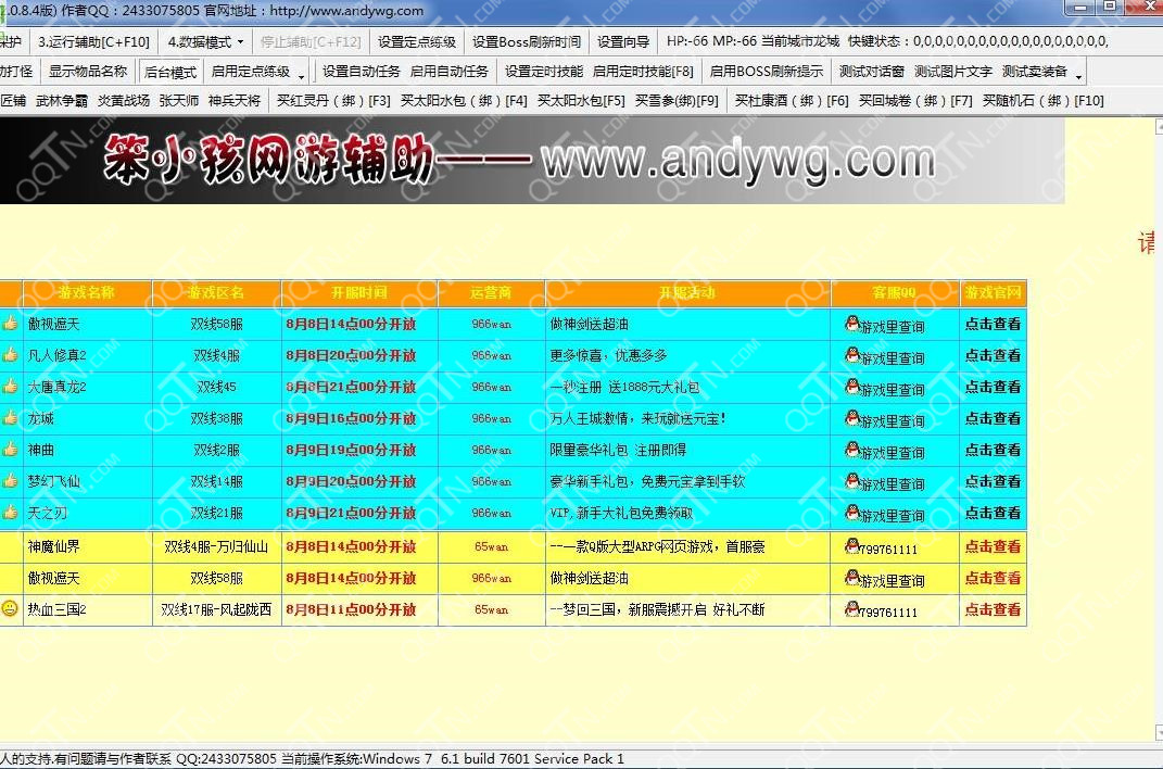 注:輔助默認已配置法師自動地雷及密鏡自動練級。和自動又倍烤火。