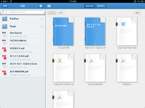 在iPad客戶端無線查看360云盤里的文檔、照片、小說等內(nèi)容。