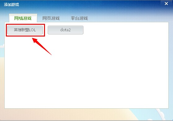2.選擇你想要添加的游戲,如下圖選擇“英雄聯(lián)盟”