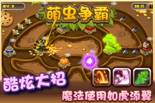 《萌蟲爭霸》是一款蟲子之間的策略塔防游戲,游戲的戰(zhàn)斗緊張刺激,操作輕松活潑,融合了生產(chǎn)造兵、塔防、基地升級、酷炫魔法等,以4大蟲族戰(zhàn)斗為主旋律,主題鮮明,畫風(fēng)可愛。游戲中共有21個(gè)風(fēng)光各異的地圖場景,12種狂拽酷炫的魔法技能,快速攻防轉(zhuǎn)換,挑戰(zhàn)你的策略和布局。是不是很刺激,喜歡的玩家趕快下載體驗(yàn)一番吧。【游戲特點(diǎn)】