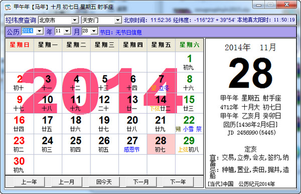 科學(xué)算法萬年歷含有方便快捷的查閱日子、重要節(jié)假日、老黃歷的功能 ,而且日歷上能顯示月相相關(guān)信息方便愛觀天象的您提供方便,具有查看當(dāng)?shù)亟?jīng)緯度的小功能以及科學(xué)天文精確時(shí)間和北京時(shí)間的查看,方便您校對最新時(shí)間。【軟件特點(diǎn)】