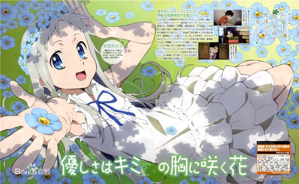 暢銷日漫《あの日見た花の名前を僕たちはまだ知らない》在大陸被譯作“我們?nèi)晕粗滥翘焖姷幕ǖ拿帧保绰劵麆t是該作的簡稱。本作是一部用直達(dá)內(nèi)心的筆觸描寫青春期的少男少女在面對戀情、友情、糾葛時,有歡欣笑容也有傷心淚水的青春原創(chuàng)動畫片。