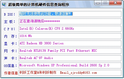 OS硬件信息查詢(xún)程序 V1.00 簡(jiǎn)體中文綠色免費(fèi)版 作者原話(huà):a從2006年開(kāi)始一直默默支持著greendown.cn,所有工具都是在greendown.cn下載的,小生沒(méi)什么本事,也發(fā)揚(yáng)一下共享精神,所以就弄了2個(gè)超級(jí)簡(jiǎn)單的小程序