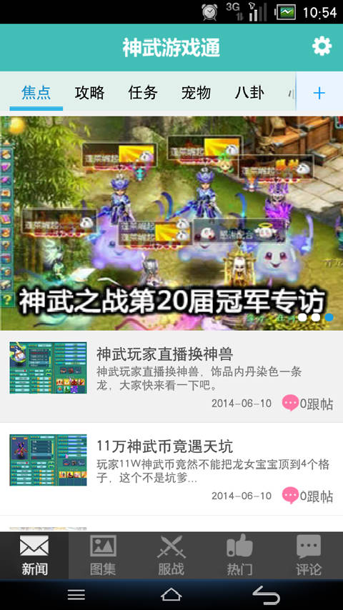 1.囊括神武最新的新聞、裝備、攻略、八卦、錄像和高玩點(diǎn)評(píng)等信息2.特別為喜歡看極品裝備的玩家設(shè)計(jì)了圖集模式