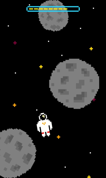 太空3秒是一款休閑益智類的游戲。這款游戲具有強烈的像素風(fēng)格,為玩家?guī)碛钪嫣罩械纳衿娆F(xiàn)象。游戲玩法非常簡單,玩家只需要通過翻轉(zhuǎn)設(shè)備左右來控制宇航員的方向即可。