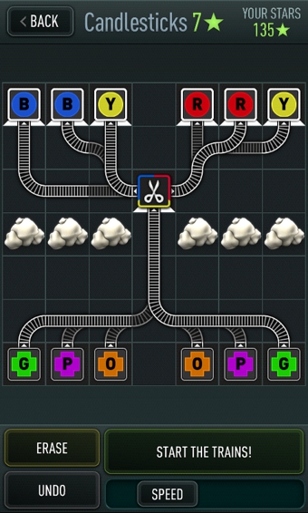 火車速遞 Trainyard Express》是一款富有創(chuàng)意的益智休閑游戲?!痘疖囁龠f Trainyard Express》不同于你曾經(jīng)玩過的游戲解謎,這款游戲簡單易懂,但卻非常難去精通。游戲的規(guī)則很簡單,幫火車鋪好軌道,將每個列車送到目標站,紅色的火車要去紅站,而藍色的火車則要去藍色的火車站。你可以控制好鐵軌的排列,讓數(shù)量火車一起奔跑。游戲沒有時間限制,或者有高分的設定。游戲的目的很簡單,就是讓你找出每個關卡的解決方案而已。游戲提供了60個關卡,初期關卡幾乎是非常簡單,但隨著游戲難度增加,新的玩法不斷引進,讓你鋪的軌道就不是這么容易能鋪出來了。整體游戲素質非常棒,也很容易讓人沉迷,推薦各位玩家都來下載玩一下。