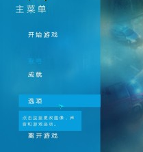 進(jìn)入到游戲,首先先看看主菜單,第一項是開始游戲,接著是賬號,成就,選項,和離開游戲..